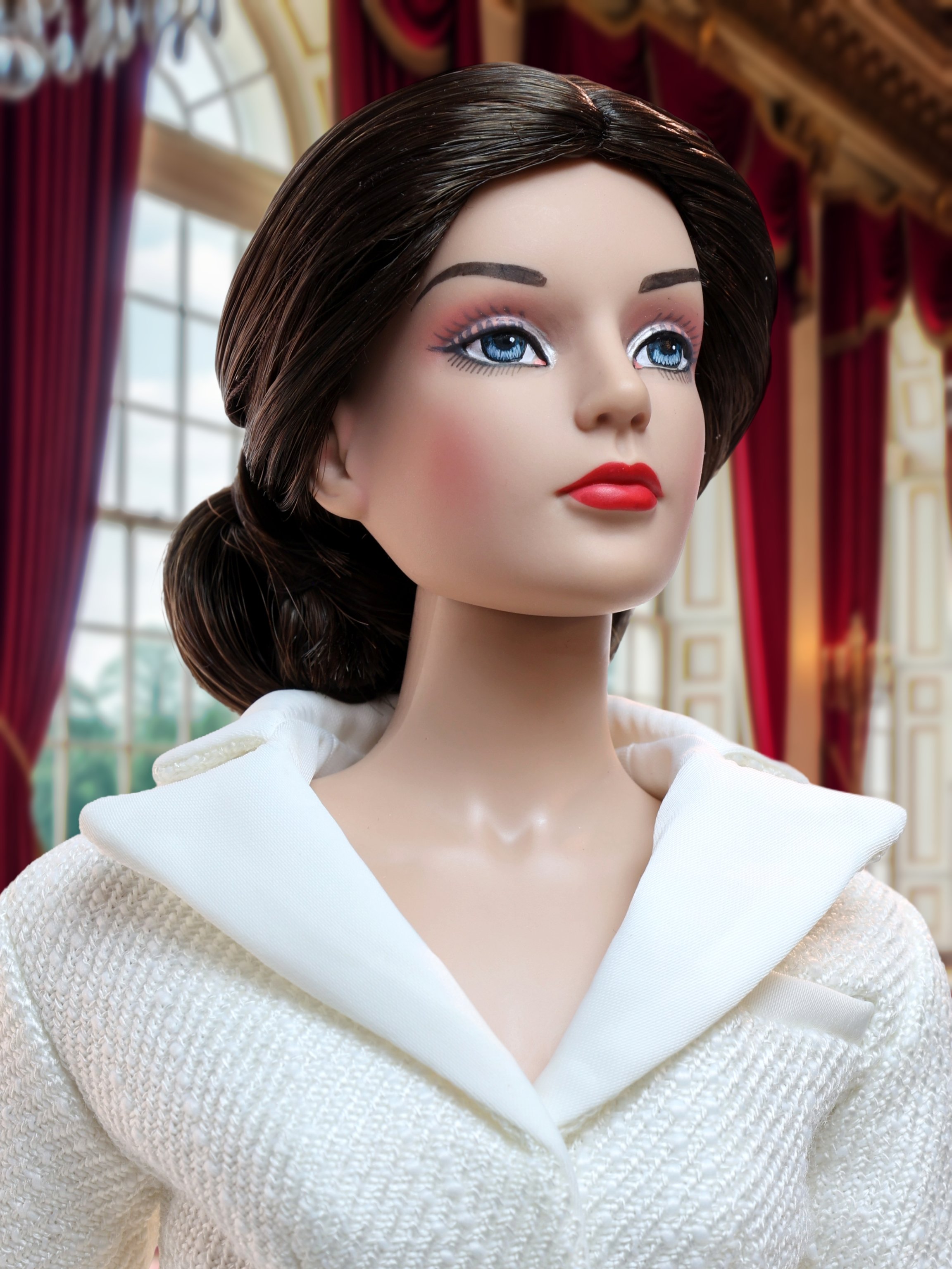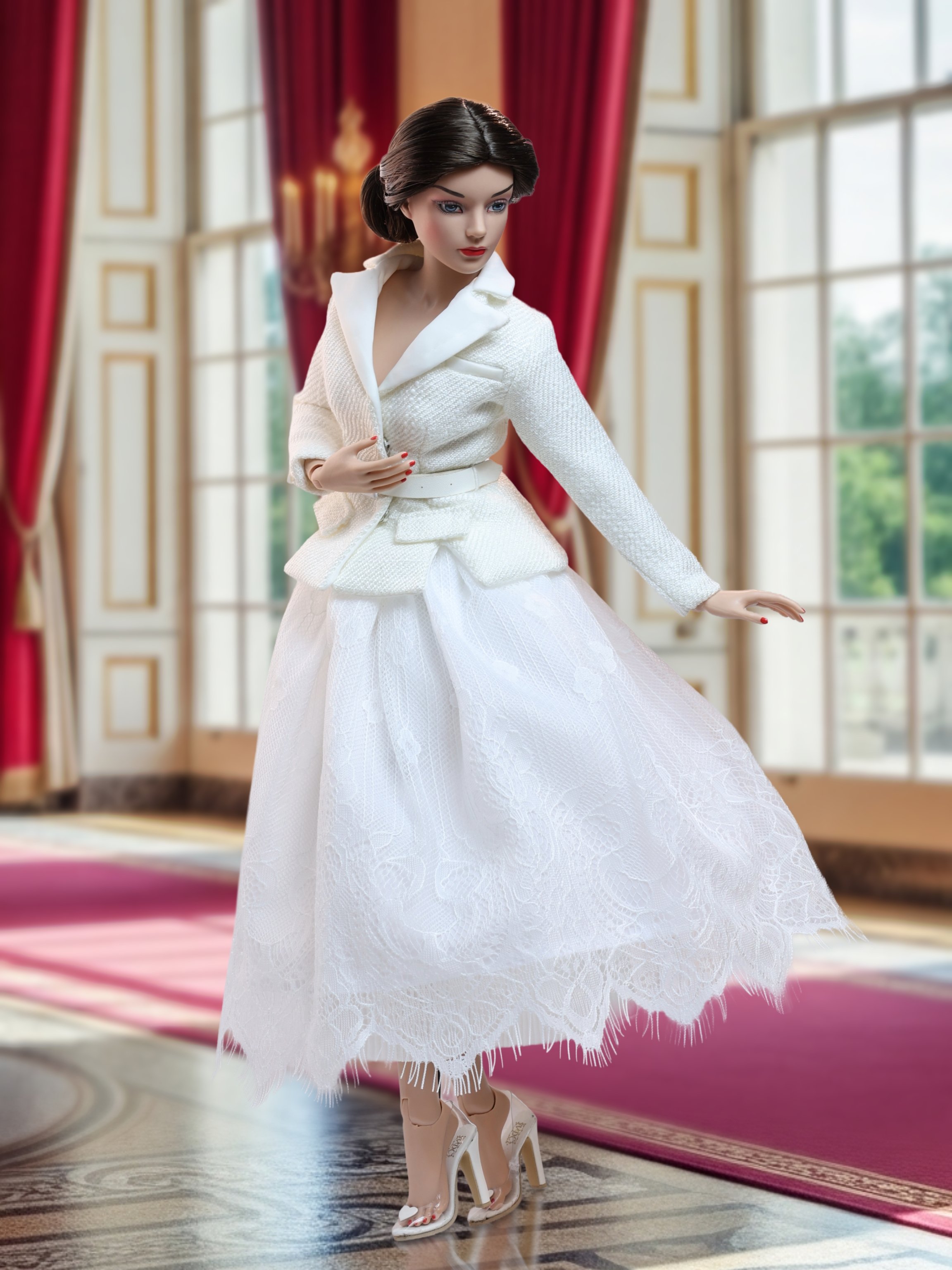 Inspired by the faithful works of Saint Lucia, Helen Kish created this luminous costume that is sure to bring light into any home. Saint Lucia is known for helping persecuted Christians who were hiding in catacombs by delivering food to them. In order to have her hands free to carry provisions for the people, she attached candles to a wreath on her head to light the way in the darkness. This meticulously detailed costume features beautifully embroidered poinsettias, and a wreath sculpted by Helen, with little candles that fit right in it! Grace is delighted with this creation because it is not only a work of art, but it is also a powerful reminder that even in the darkest places, there is light and hope ... and sometimes you might just be the one chosen to bring it to others. Shine on, dear friends! (You will need to supply your own candles; standard cake candles fit nicely!)
