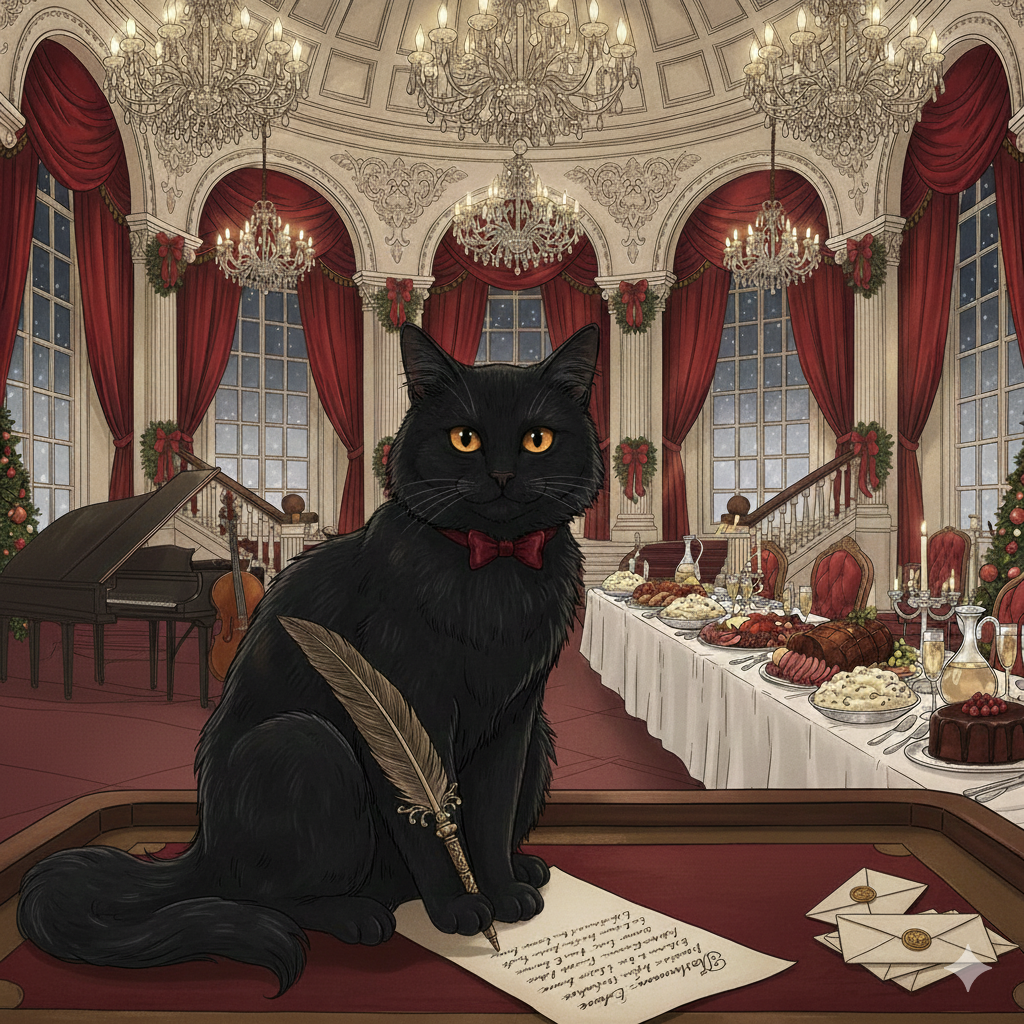 It is my duty — and apparently my burden — to inform you that another grand holiday event has overtaken the Painted Lady mansion. Ellowyne has received her December ensemble and is spiraling into seasonal glamour. The dress is dramatic enough to command its own postal code, the flowers are as red as her expectations, and the skirt could double as emergency shelter. Naturally, she’s thrilled and overwhelmed simultaneously.