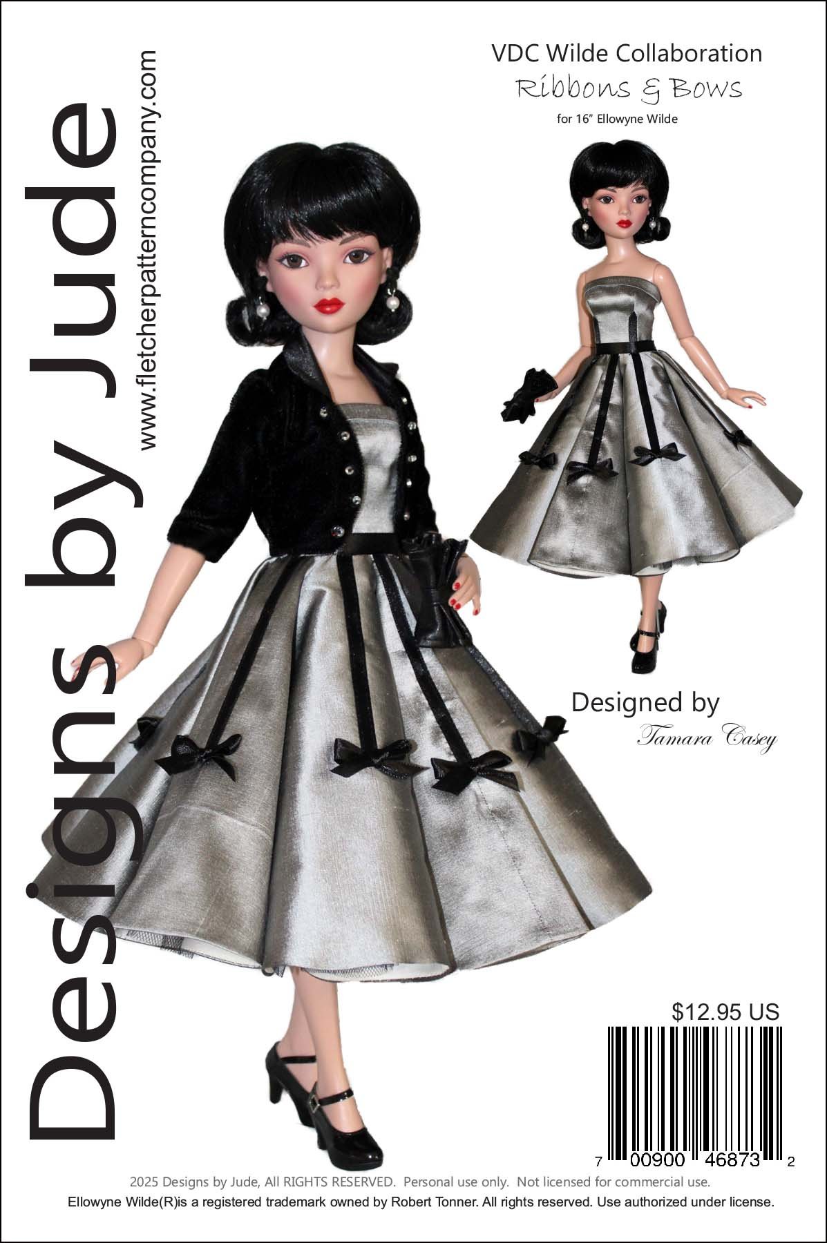 The most recent pattern Tamara created for Ellowyne Wilde debuted in January 2026 and quickly became an instant favorite with collectors. The pattern, titled “Ribbons and Bows,” captures the glamour of classic 1950s fashion.